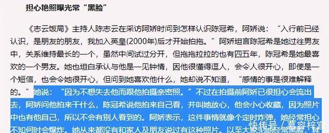 后来两人分手,私密照曝光,险些断送了阿娇的明星生涯。 当被问到为什么要和他拍照时,阿娇表示因为怕失去陈冠希,当时陈冠希曾解释说拍下照片只供自己观看,因为照片中有他自己,所以这些照片肯定不会让别人看到。